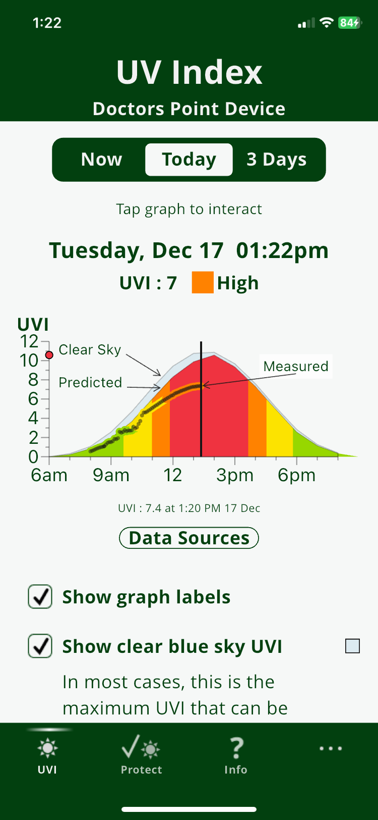 Live + Predicted Data: Combines real-time measurements from the Marae UVI Display with NIWA predictions for comprehensive UV awareness.