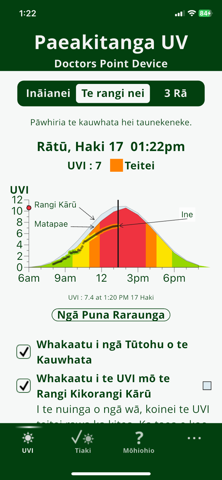 Real-Time UV Index for Your Marae